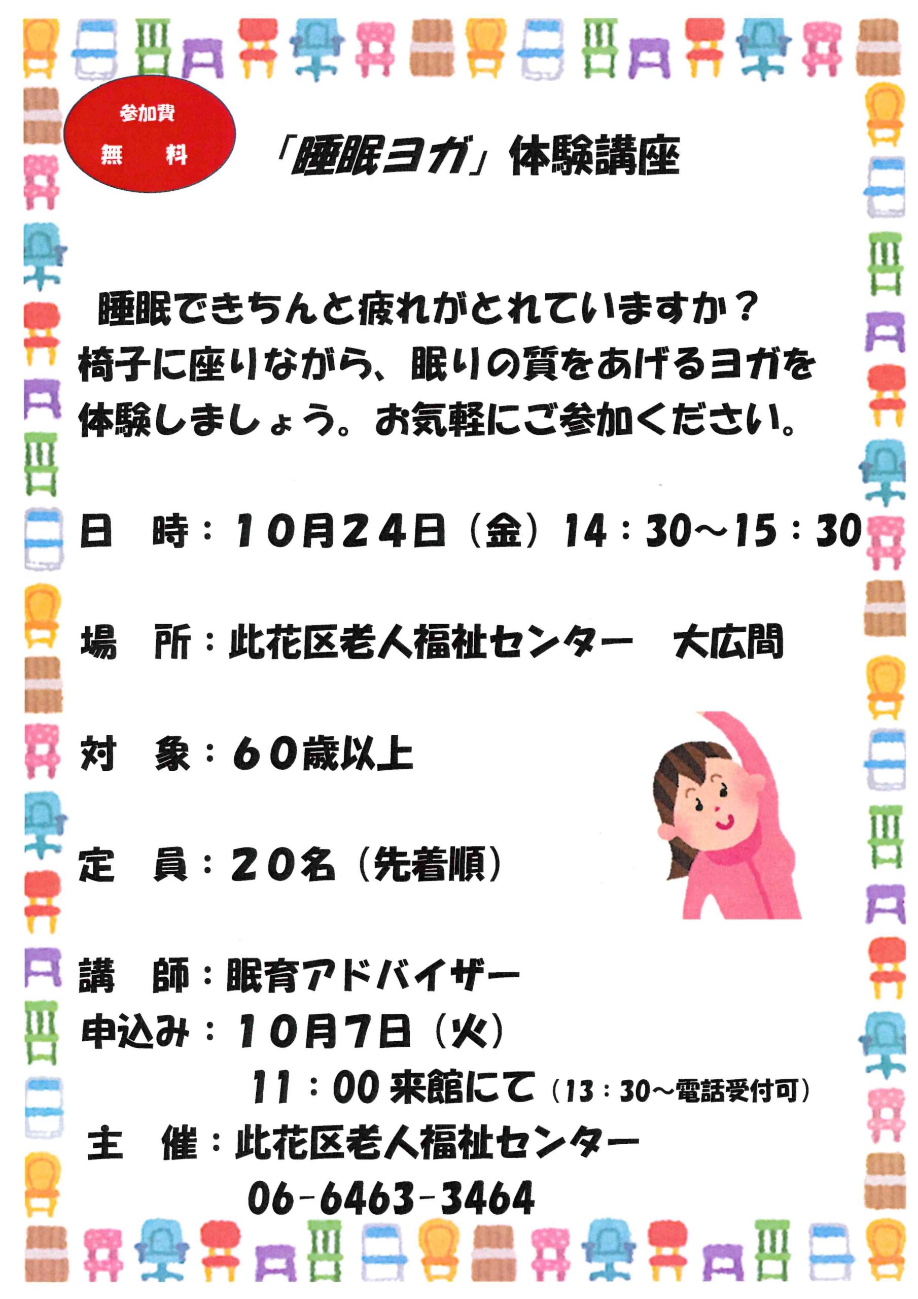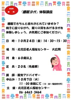 【「睡眠ヨガ」体験講座/此花区老人福祉センター】