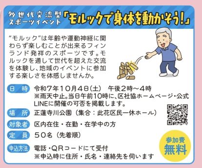 【モルックで身体を動かそう!/正連寺川公園(集合:此花区民一休ホール)】