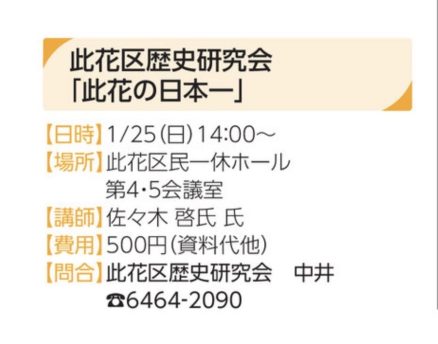 【此花区歴史研究会「此花の日本一」/此花区民一休ホール】