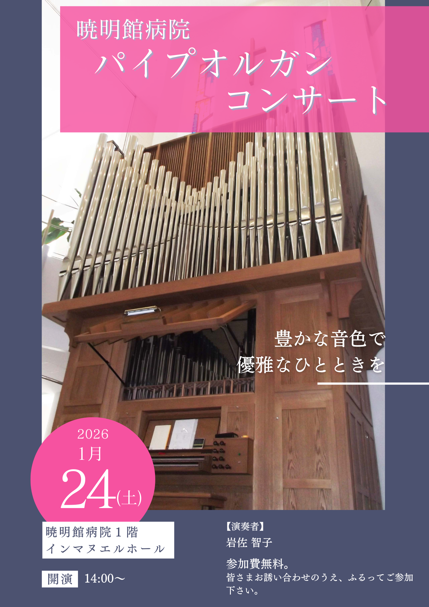 【パイプオルガンコンサート/暁明館病院】
