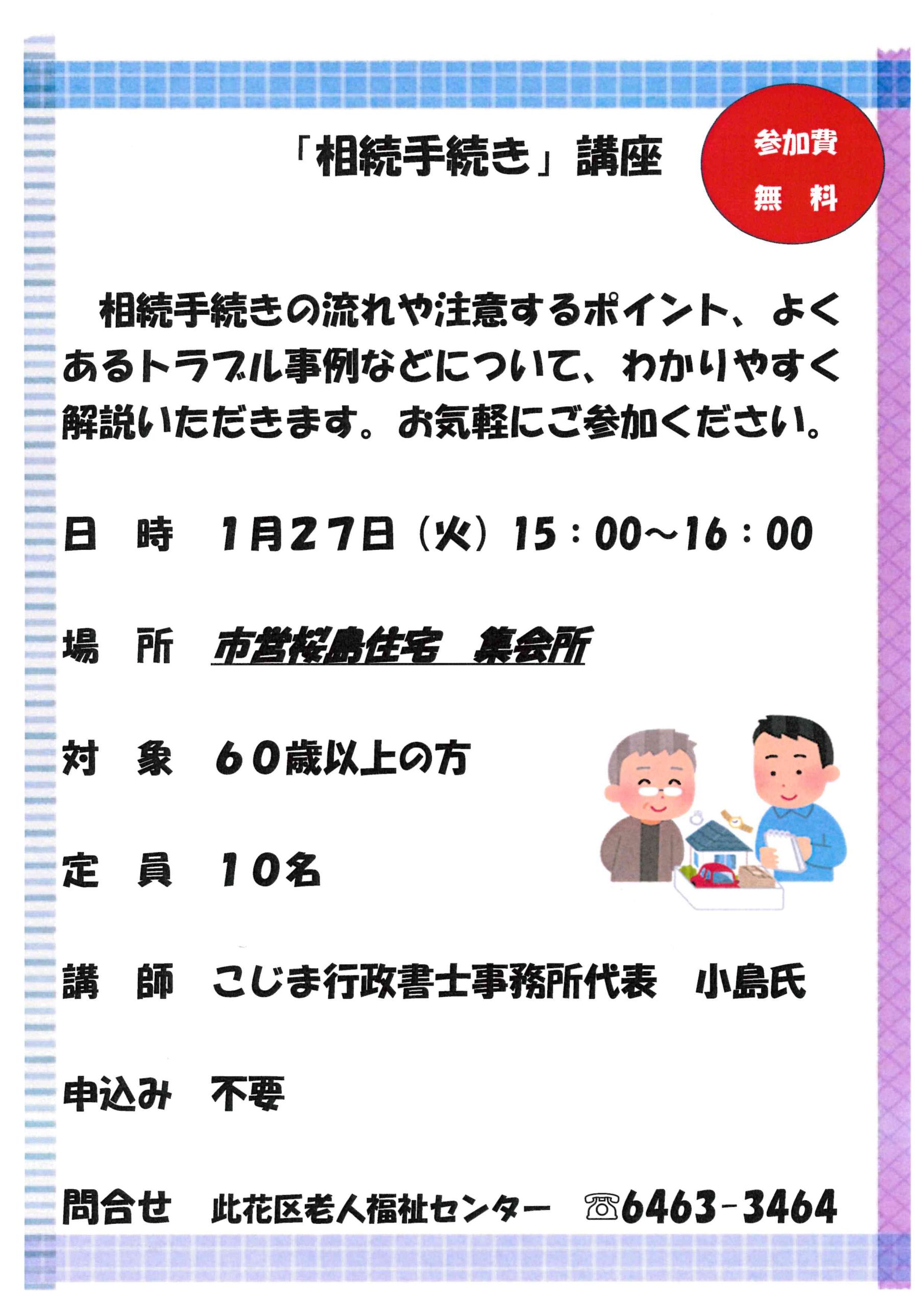 ▶︎「相続手続き」講座/此花区老人福祉センター