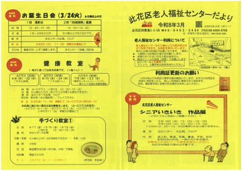 令和8年2月 此花区老人福祉センターだより